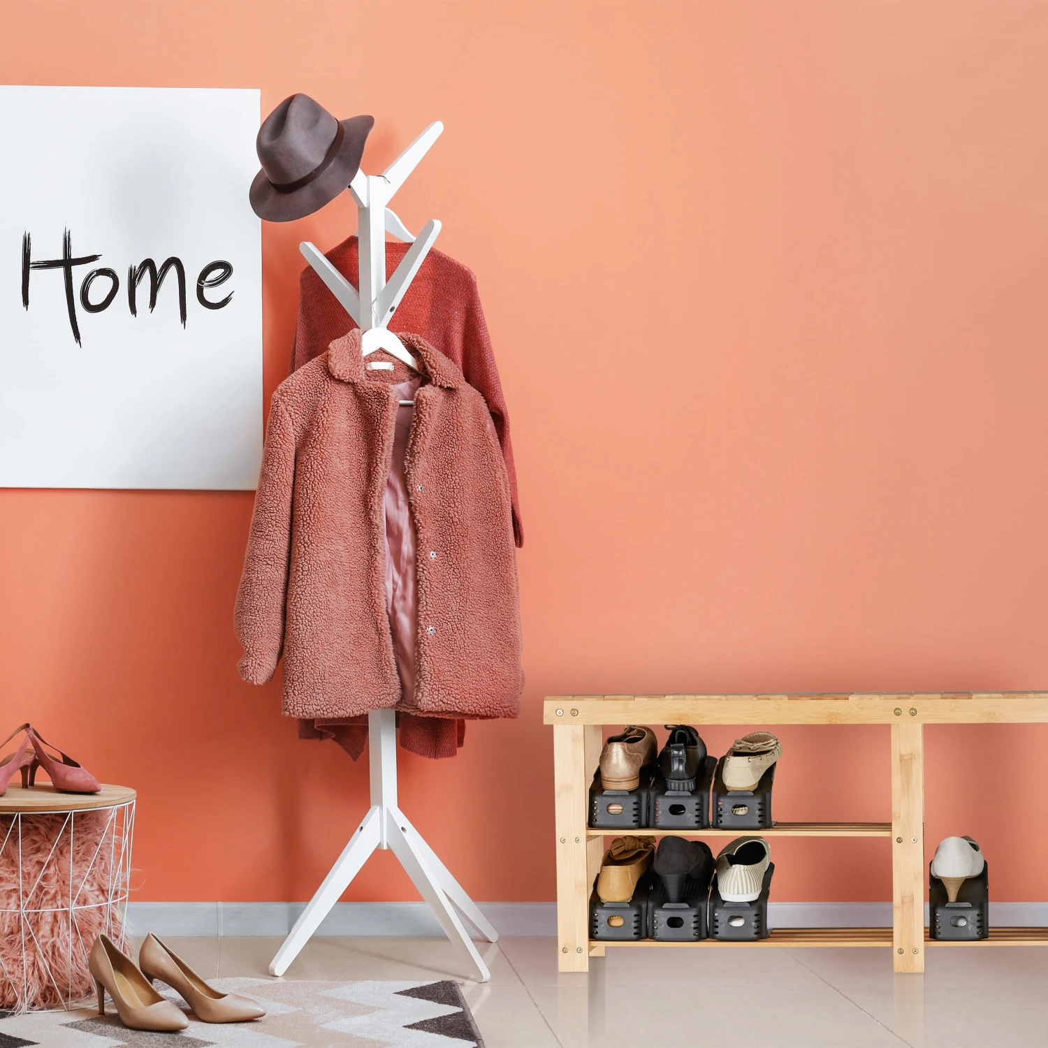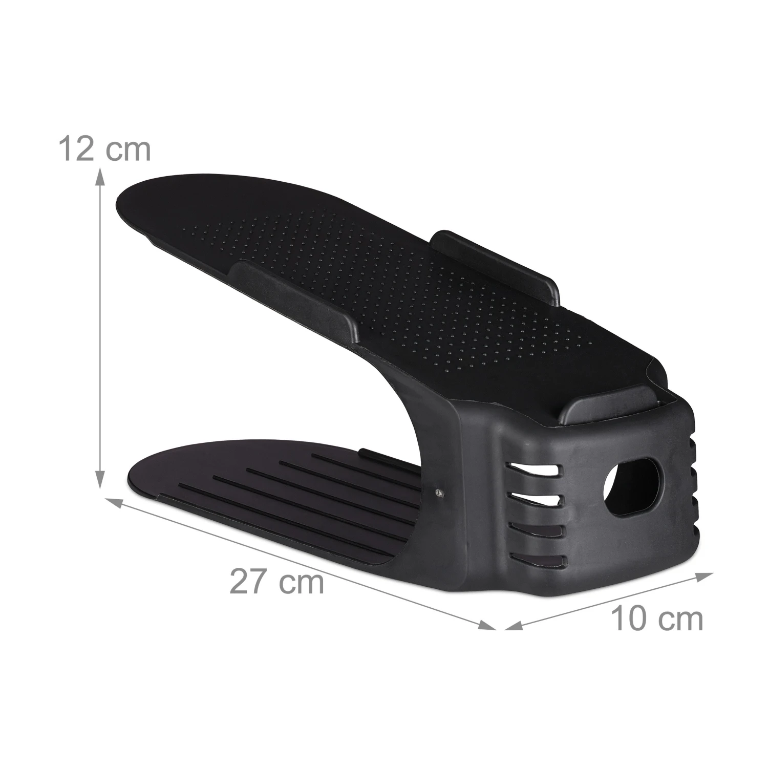 Die praktischen Schuhstapler sind ideale Ordnungshelfer im Kleiderschrank. Auf zwei rutschfesten Flächen können Schuhe einwandfrei übereinander gestapelt aufbewahrt werden. Die Ablage verhindert dabei das Verschmutzen des Bodens und Regals, sowie das anderer Schuhe.