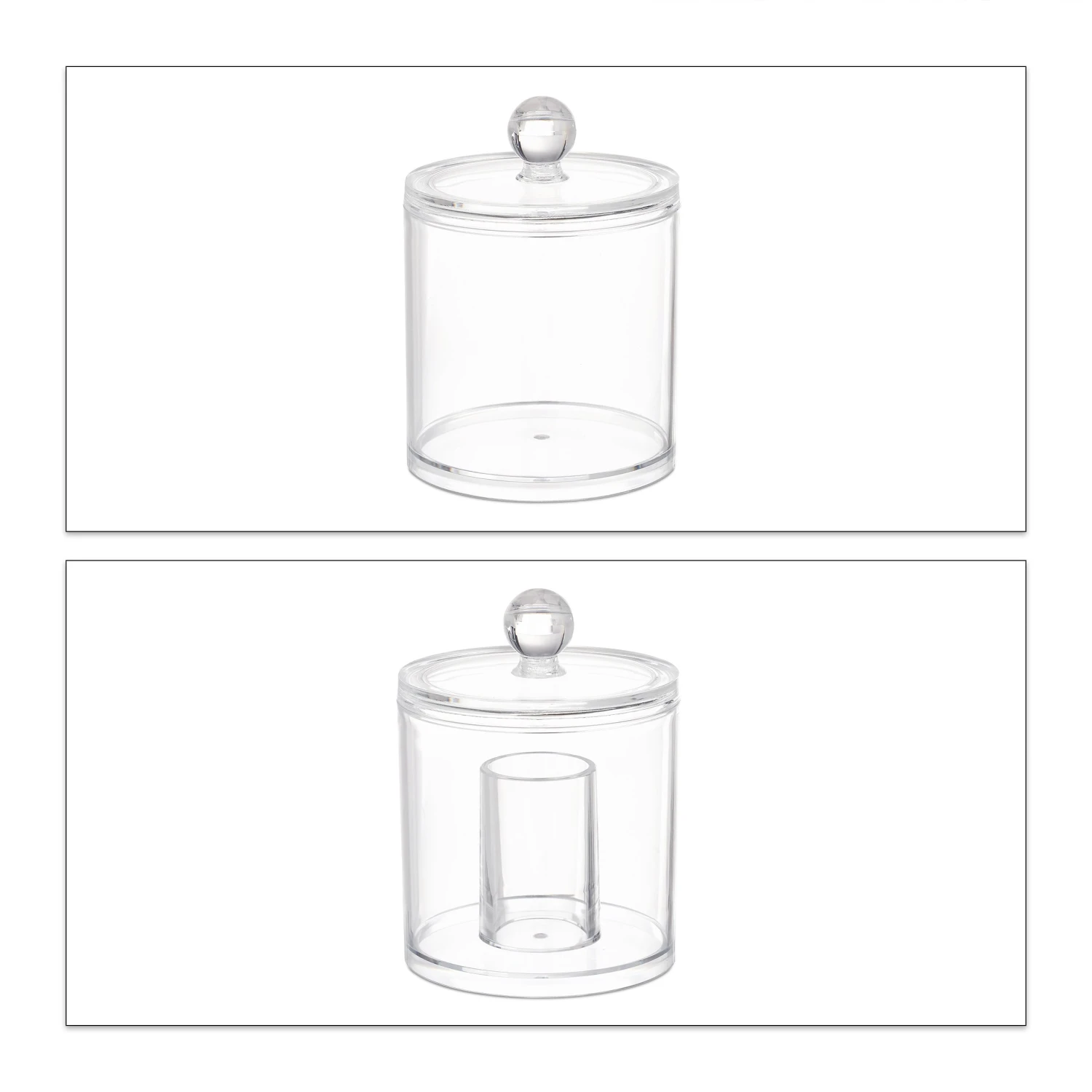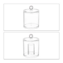 Die Acryl Organizer im 3er Set helfen Ihnen, im Bad oder auf dem Schminktisch Übersichtlichkeit und Ordnung zu wahren. Das Set umfasst Dosen, die als Wattepadhalter sowie für Wattestäbchen nutzbar sind. Dank der Deckel bleibt die empfindliche Watte garantiert sauber. Auch kleinere Accessoires wie Haargummis oder Kosmetikpinsel finden in den Behältern Platz. Das Acryl punktet als beständiges Material, das sich im Handumdrehen mit fließendem Wasser abspülen lässt.