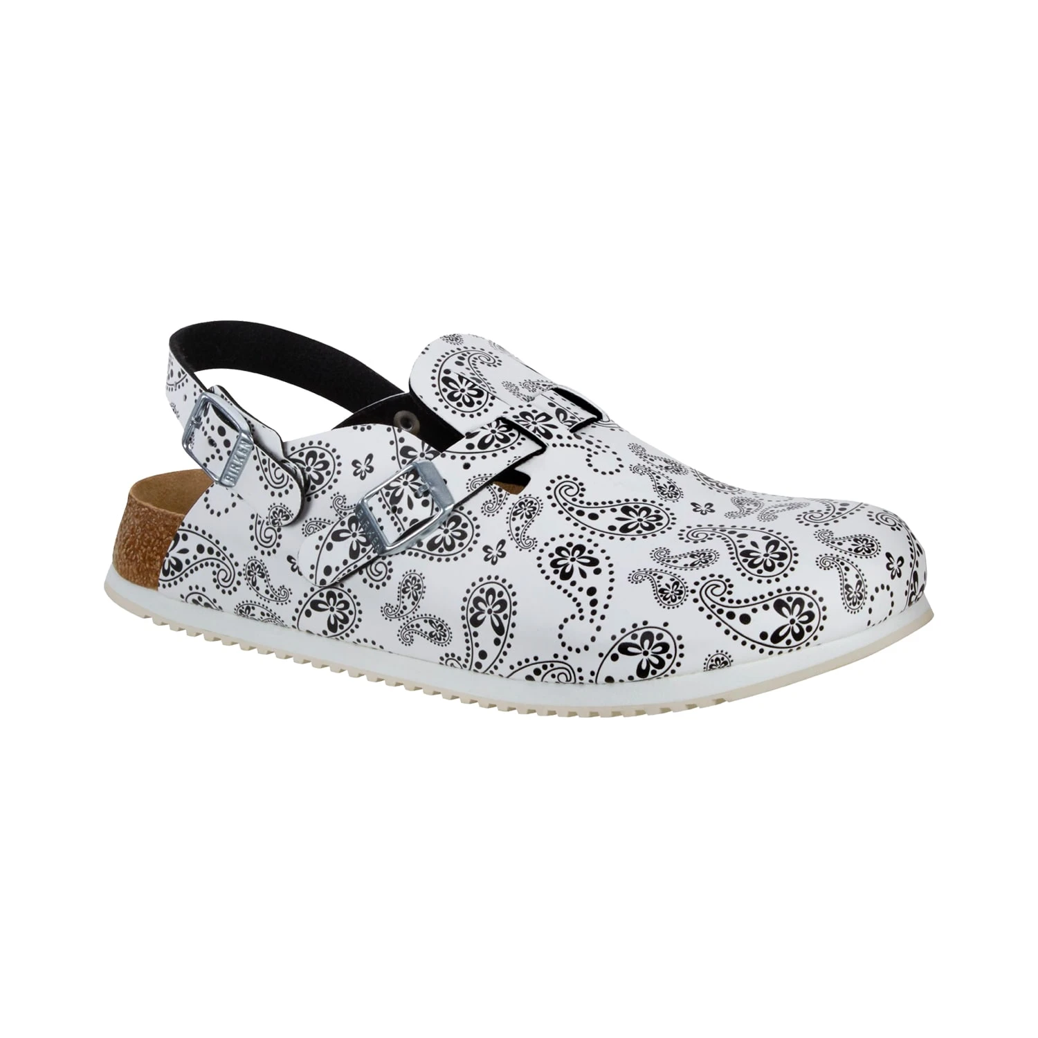 Der BIRKENSTOCK Kay SL ist ein neuer trendiger Berufsschuh (Clog) mit individuell einstellbarem Ristriemen und umklappbarem Fersenriemen, was einen guten Halt ermöglicht. Der Clog mit dem anatomisch geformten Original BIRKENSTOCK Kork-Latex-Fußbett mit Weichbettung verfügt über eine Zweikomponentensohle. Diese besteht aus einer farblich kontrastierenden, dämpfenden Zwischensohle aus EVA und einer rutschhemmenden, profilierten Laufsohle aus echtem Gummi. Die Laufsohle ist darüber hinaus öl- und fettbeständig. Der Clog ist deshalb besonders für den täglichen Einsatz in medizinischen Einrichtungen, Küche, Gastronomie und Freizeit geeignet. Das Obermaterial des Clogs besteht aus weichem, aber formbeständigem und sehr hochwertigem Leder. Der Clog bietet Komfort und Sicherheit. Das geschlossene Design des Schuhs schützt den Vorderfuß vor Verletzungen durch Stöße. Durch den verstellbaren Ristriemen und den umklappbaren Fersenriemen lässt sich der Schuh zudem individuell an den Fuß anpassen. Sohle: Superlaufsohle, dämpfende EVA-Zwischensohle, rutschhemmende, öl- und fettbeständige Gummilaufsohle Details: individuell einstellbarer Ristriemen und umklappbarer Fersenriemen Rutschhemmung (Kategorie SRC) nach EN ISO 20347:2012 getestet Anatomisch geformtes Kork-Latex-Fußbett mit Weichbettung Obermaterial: weiches Glattleder Decksohle: Veloursleder Weite: schmal