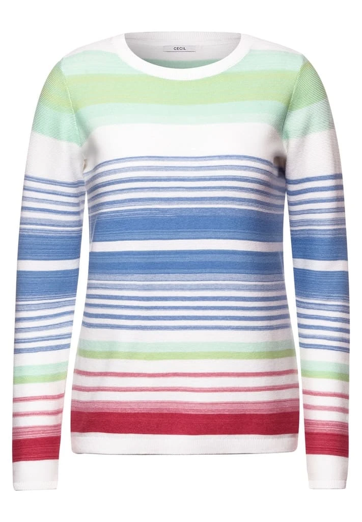 CECIL Pullover, Langarm, Streifen Muster, Multicolour Mix it up! Der Damenpullover von CECIL begeistert mit einem Streifen Muster. Dieser Print zeigt sich in Multicolour besonders trendy. Das Material trägt sich angenehm und macht den Pullover zu einem neuen Lieblingsbegleiter durch den Winter. Pflegehinweise: 30°C Feinwäsche/Wollwäsche, Nicht bleichen, Nicht im Wäschetrockner trocknen, Nicht heiß bügeln, Behandlung in Reinigungsmaschine mit folgenden Lösemitteln: Perchlorethylen, Kohlenwasserstoffe