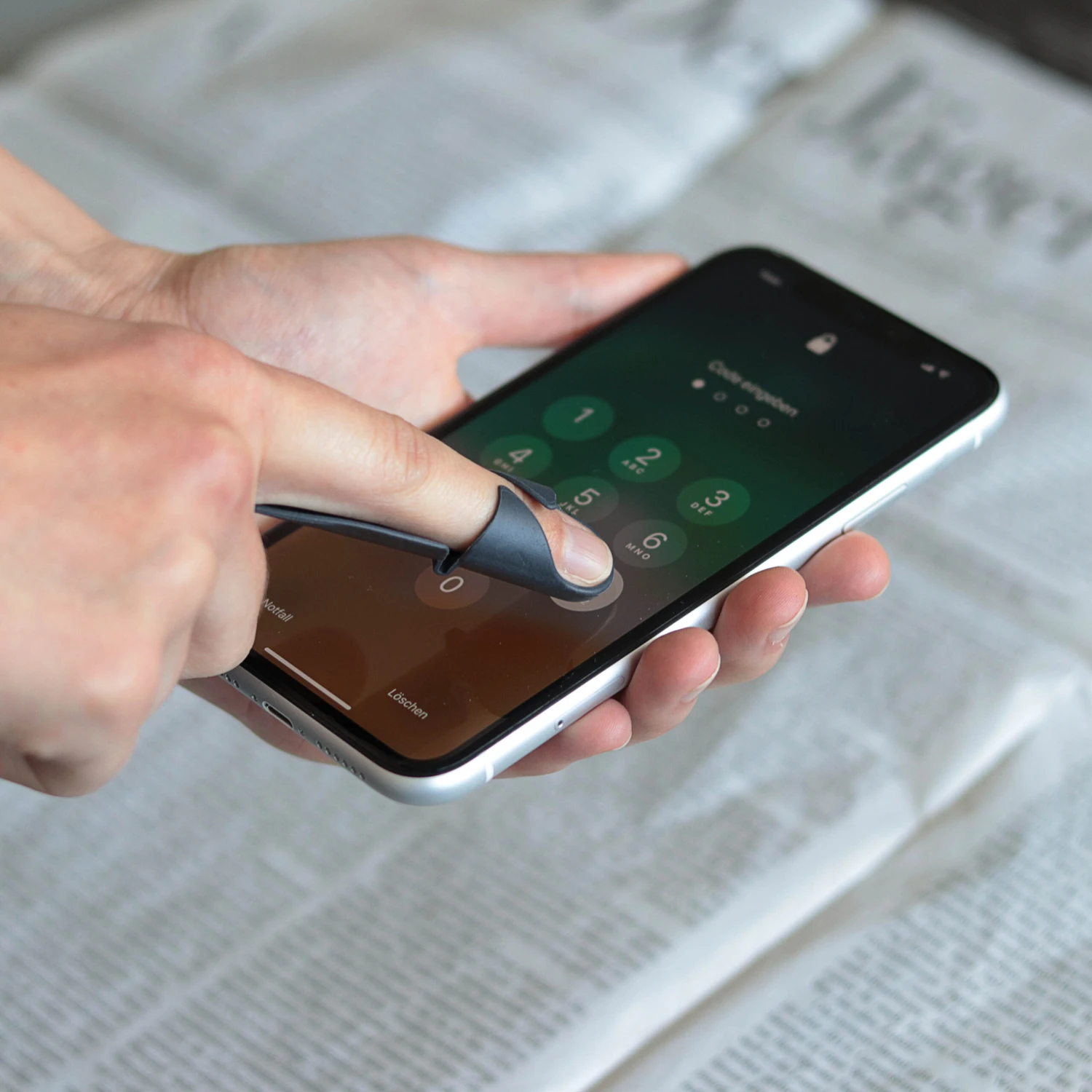 In unserem Alltag öffnen wir täglich Türen, drücken Knöpfe und Schalter oder nutzen Tastaturen wie an Bank- oder Fahrkartenautomaten. Alles Flächen, die von viele Menschen berührt werden und so zwangsläufig Bakterien und Viren übertragen. Mit unserem neuen hygienischen Fingerschutz »HI SAFE TOUCH lässt sich ein direkter Kontakt mit diesen Flächen vermeiden. Der Clip aus hautsympathischem Kunststoff wird einfach über den Zeigefinger gezogen und lässt sich anschließend leicht reinigen. Das Material ist leitfähig und so können mit HI SAFE TOUCH auch Touchscreens bedient werden. Der Fingerschutz kann am Schlüsselbund befestigt werden und ist so immer griffbereit.