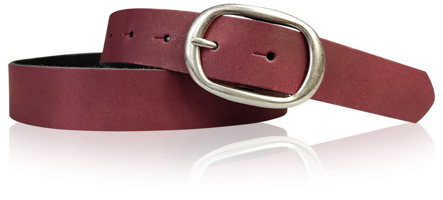 Gut kombinierbarer Damengürtel mit einer schlichten, zeitlosen Dornschnalle. Der Gürtelriemen ist aus echtem Rindsleder (Glattleder), in vielen Farben erhältlich. Gürtelfarben: schwarz, weiß, rot, braun, grau, marine.