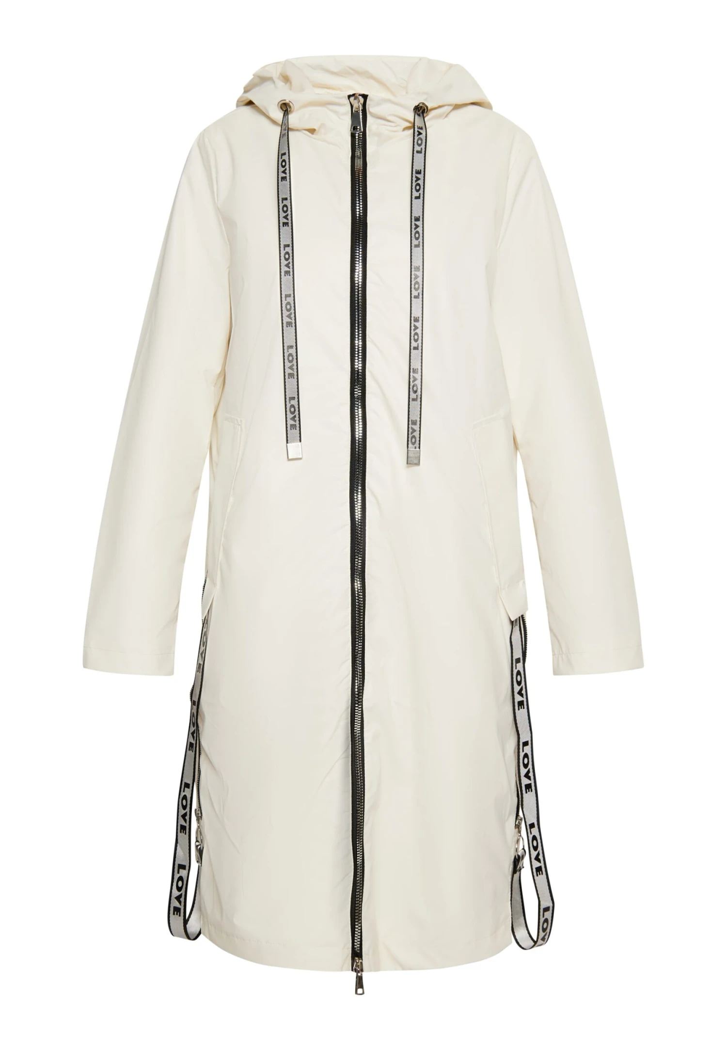 Mit langen LOVE-Zipperbändern präsentiert sich dieser Mantel von myMo. Das leichte Modell ist aus einem wasserabweisenden, dezent glänzenden Material gefertigt und in lockerer Passform gehalten. Die langen Taschen, die große Kapuze sowie die sichtbaren Reißverschlüsse an den Seiten vervollständigen das Design.