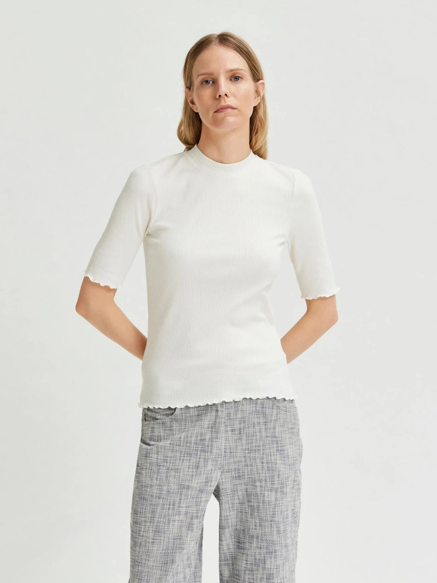 T-Shirt für Damen im Rippdesign- Aus Bio-Baumwolle- Figurbetont und dehnbar- Rundhalsausschnitt- Das Model ist 177 cm groß und trägt Größe S/36BIO-BAUMWOLLEDieses Produkt besteht aus zertifizierter Bio-Baumwolle. Das bedeutet, dass für den Anbau der Baumwolle keine schädlichen Chemikalien, wie Pestizide oder Insektizide, verwendet wurden. Dies gewährleistet den Bauern ein sicheres Arbeitsumfeld, und der Boden bleibt länger fruchtbar. Pflegehinweise: 40°C Buntwäsche, Nicht bleichen, Nicht im Wäschetrockner trocknen, Mäßig heiß bügeln, Nicht trockenreinigen