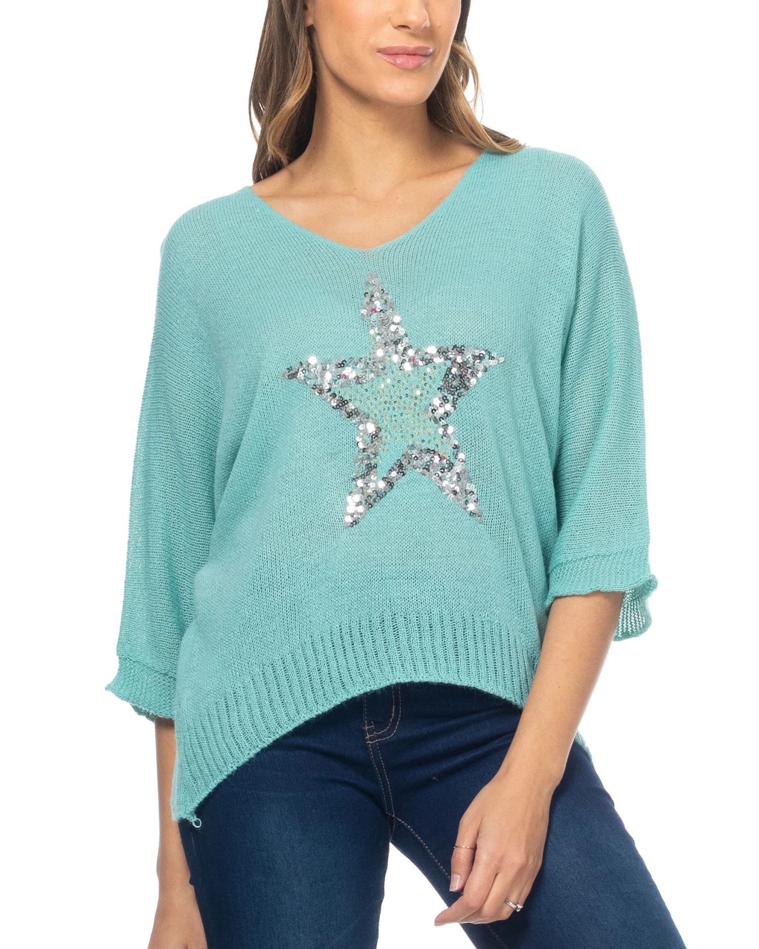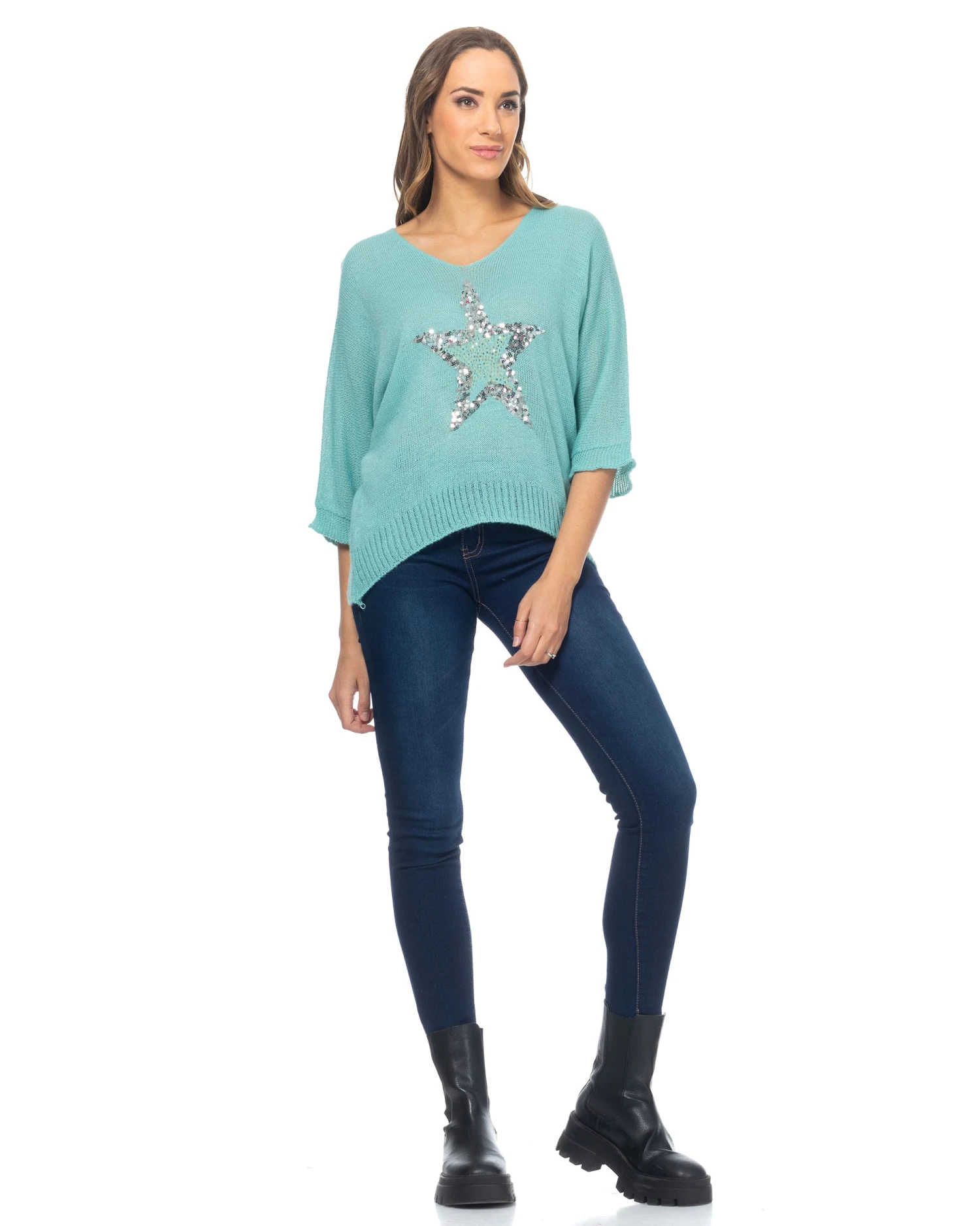 Strickpullover mit Strassstern und Dreiviertel-Ärmel
