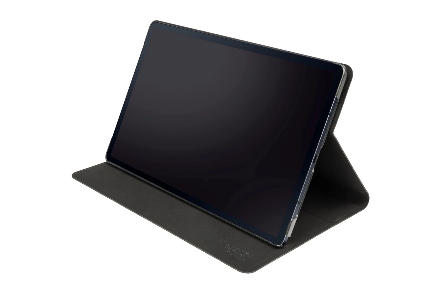 Multifunktionales Hartschalencase aus robusten gummierten Material in 3D Optik. Der faltbare Deckel vereint Schutz- und Standfunktion . Das Außenmaterial ist angenehm griffig, der Innendeckel ist ist mit weicher Mikrofaser bezogen. Der stabile Hartschalenclip ist auf dem rückseitigen Innendeckel teilfixiert und läßt sich so horizontal variabel einstellbar als Stand nutzen. Zum Schreiben läßt sich der Faltbare Deckel aufrollen und bildet dann einen Keil mit relativ flacher Neigung. Beim Öffnen und Schließen des Deckels wird das Gerät aktiviert bzw. in den Ruhemodus versetzt.