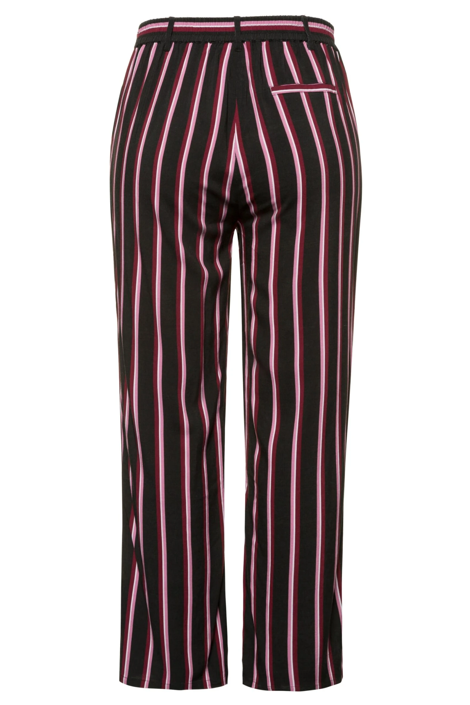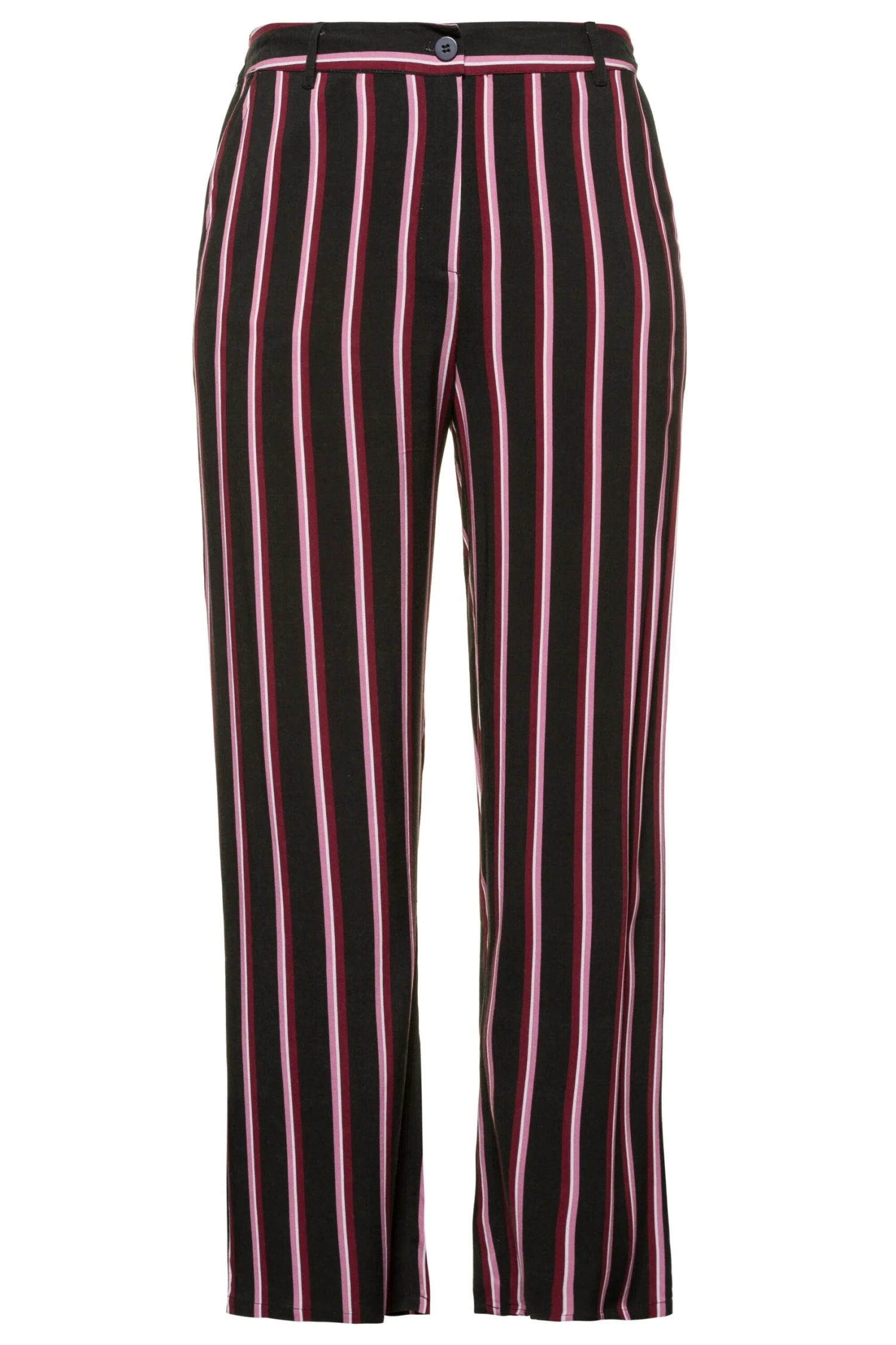 Streifenhose, konisch und glatt fallend. 2 Taschen, teilelastischer Komfortbund mit Gürtelschlaufen, Knopf und Zipper.